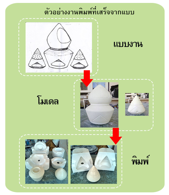 หรือสั่งเพียงโมเดล + พิมพ์ ที่ลูกค้าจะนำไปเผาเอง โปรดแจ้งข้อมูล % การหดตัวของดิน